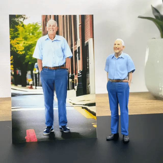 Oživte vzpomínky s touto krásnou 3D figurkou na přání. Je to osobní suvenýr, který zachytí podobu milované osoby ve třech rozměrech. Skvělý jako dárek, dekorace nebo vzpomínka na někoho, kdo je vám blízký.